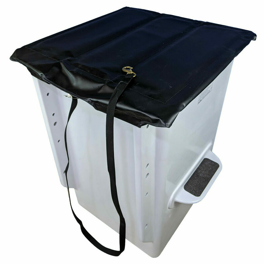 Description: No one wants to work in a dirty bucket full of water, and that's what this Folding Hard Top Bucket Cover prevents. The plastic polycomb support slats prevent water from pooling on top, but folds up into a nice manageable space. The cover is held in place by a nylon strap that runs around the bucket opening under the lip which is then tightened with a buckle. Fits buckets measuring 24" by 24" on the inside.