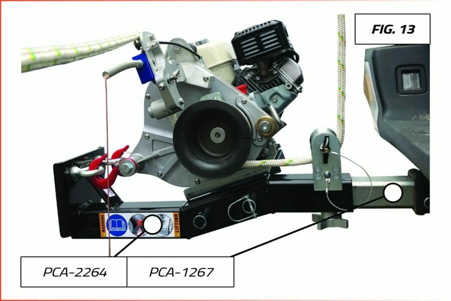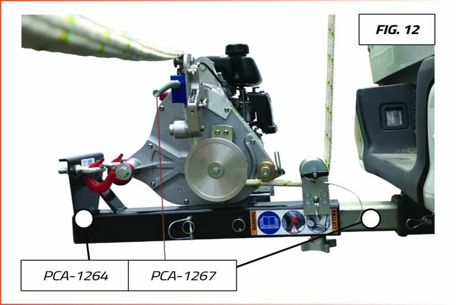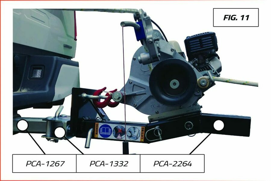 Whereas when combined with other accessories it will be used for vertical pulling. In these cases, the winch will face the anchor point and the rope will come from the top to the winch. See Fig. 12, 13