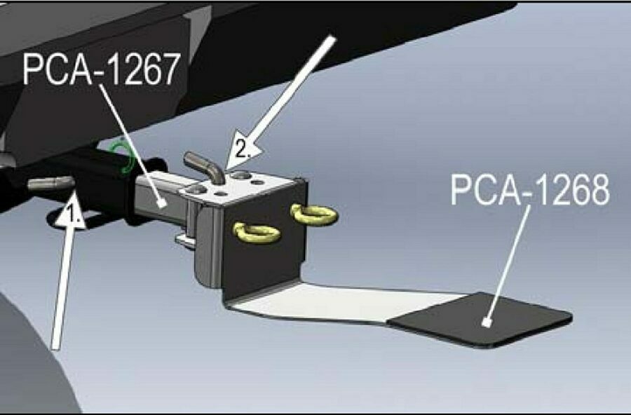 Details: Using the winch support plate (PCA-1268) with square tubing 50 mm (2'') (PCA-1267)