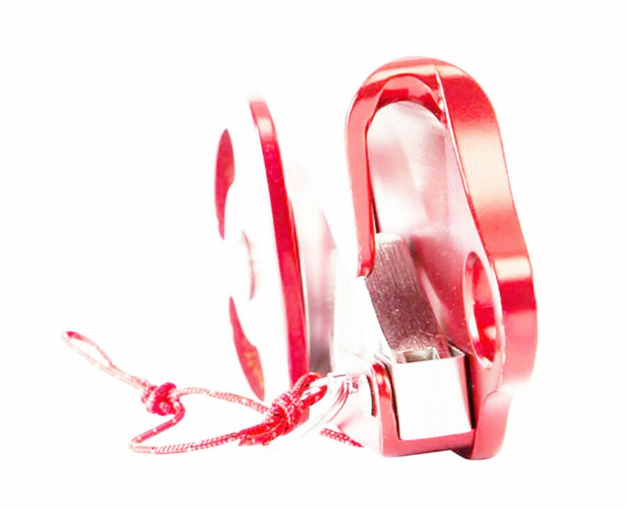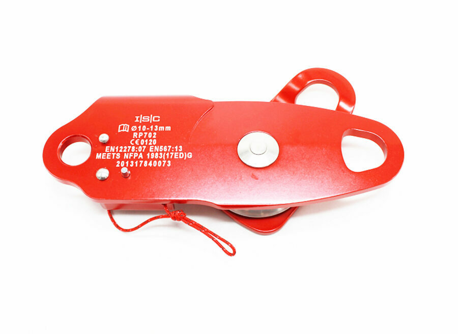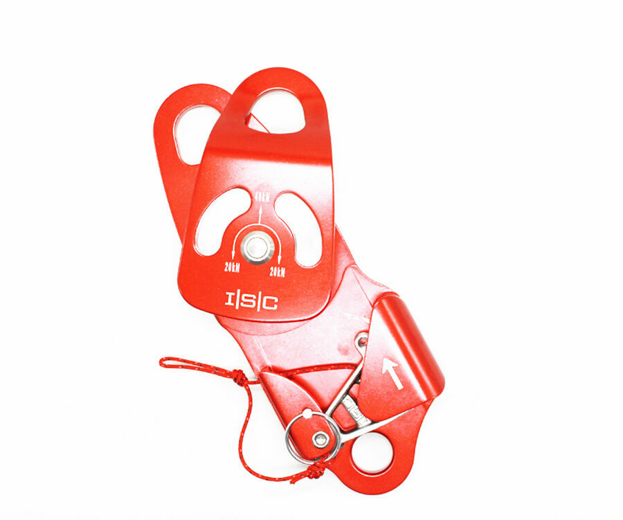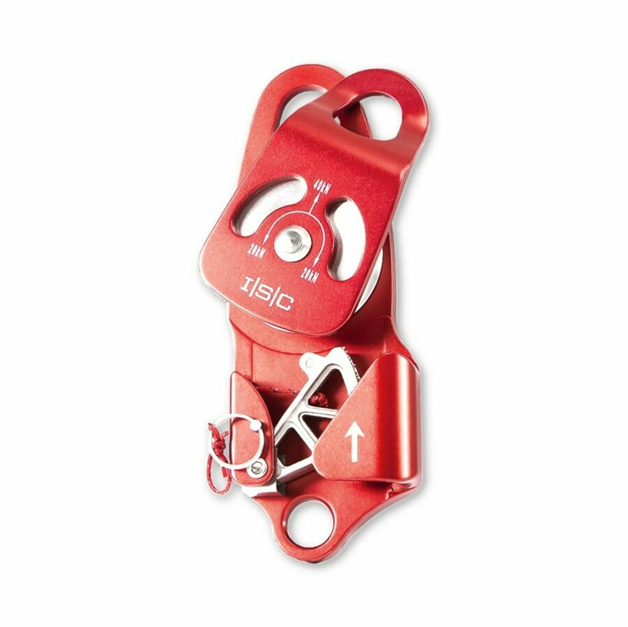 Description: These ISC brand specialized pulleys are made of aluminium and are therefore lighter, although their main feature is their cam brake system that allows the rope to pass freely in one direction and is blocked in the other. The cam is spring-loaded and can be disengaged by pulling a cord. It can also be locked in open position by using the pin provided. The pulley can then be used as a standard one, allowing the rope to go freely in both directions. Made with aluminium swing side plates and sheaves, they are mounted on a stainless steel shaft and a self-lubricating bearing which will ensure a flawless operation, all without maintenance.