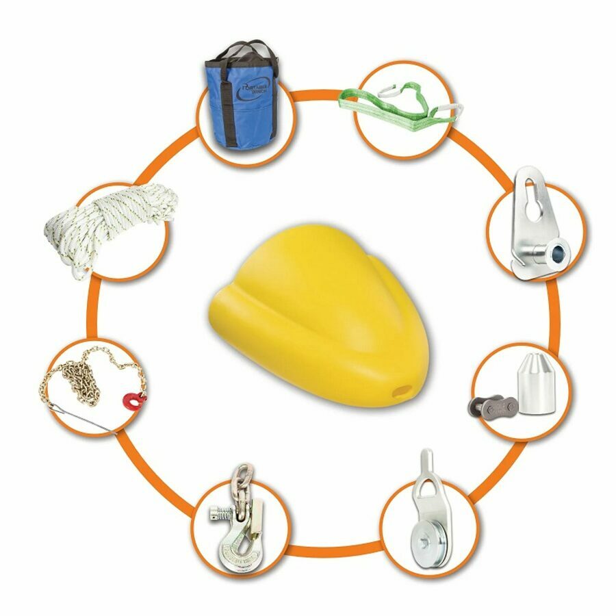 Description: KIt includes the essentials for using your vehicle as an anchoring point; a sturdy skidding cone, a choker chain and a grab hook in addition to a vehicle pull plate. Since there is often no adequate anchoring point on these vehicles, the pulling plate is the perfect solution. The user can attach a rope, a choker chain or any other type of slings thanks to its pommel and two hooks. It is designed to be inserted on any tow ball of 2'' diameter and less. The kit also includes an open-face corner block and an automatic release. The trigger is installed anywhere on the rope, using the chain link, and when it hits the pulley, it ejects the rope, allowing the log to pivot along the trail and continue its path straight towards the pulling vehicle. Combined with the skidding cone, your load will make its way and you will not have to worry about pitfalls, allowing you to focus on the trail ahead.