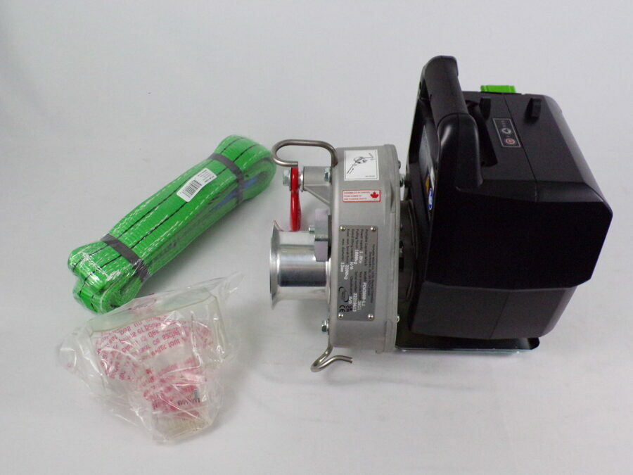 Details: Battery and charger not included! Designed in 2018 Powered by Portable Winch Brushless electric motor - 360° inclinable - 1.0 kW - 82 Volts Lithium-Ion 80/82V batteries - 2 to 5 Ah (not included) Direct drive (no clutch) Drum size: 76 mm Recommended rope diameter: 3/8" What's included with the winch: an 8' round sling (PCA-1350) Not designed for lifting!