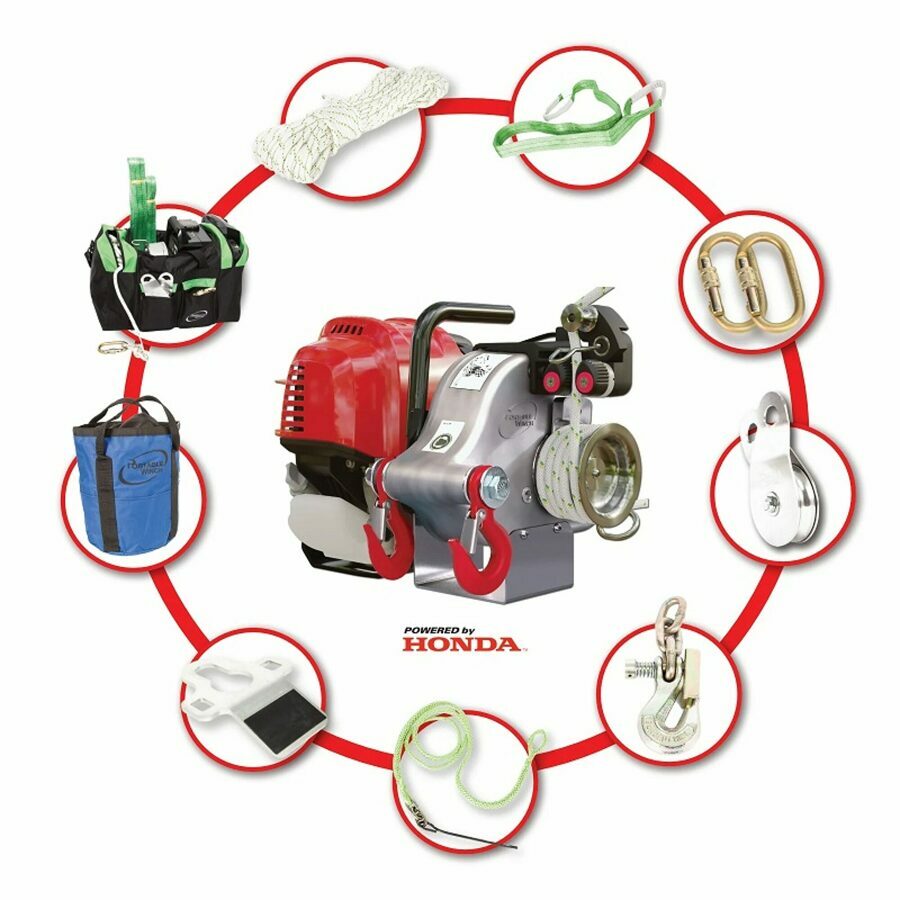 Description: The winch comes with a transport bag and a 3/8'' x 164' rope that can be stored in the rope bag. The single pulley (PCA-1275) will be useful to deviate the load or double the pulling force when needed. Combined with the 2,200-lb power offered by the winch PCW4000, you will obtain 4,400 lb of force! A complete kit for those who want the winch PCW4000 with Accessories