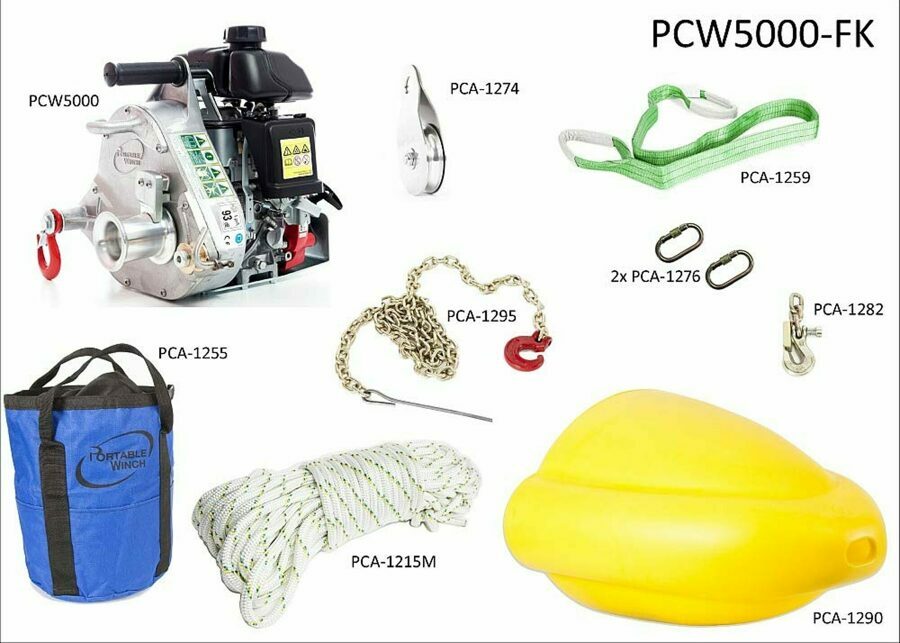 Description: Portable Winch Gas-Powered Capstan Winch Forestry Kit - 2,200-Lb. Pulling Capacity, 2.1 HP, Honda GHX-50 Engine. Complete with Accessories