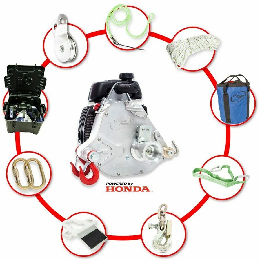 The Honda GXH50 engine mounted on this winch is an industrial grade engine that will provide performance for several hundred hours. The capstan winch concept allows users to pull loads over an unlimited length of rope, without loss of power, in a simple, effective, and safe way.