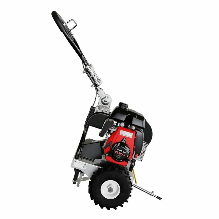 The ergonomic handle, featuring the antivibration system that significantly improves the operator's comfort, folds down to go from action, to transport, to storage.