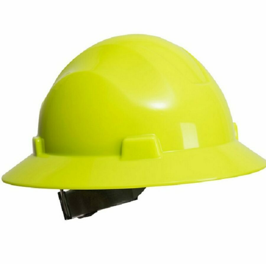 Details: Full brim hard hat: its wide profile provides extra protection against sun, glare, rain, debris and non-toxic splashes