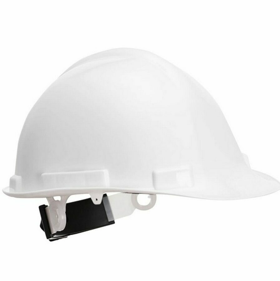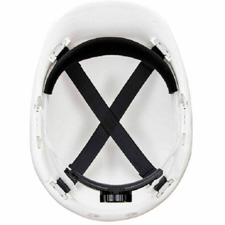 Description: Lightweight hard hat with PP shell, 4-point textile suspension harness and wheel ratchet size adjustment. Unvented helmet shell for safe use with electrical applications.