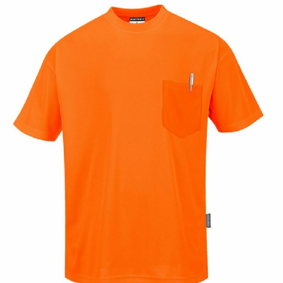 Description: This Day-Vis pocket t-shirt uses moisture wicking polyester fabric to keep the wearer cool, dry and comfortable under exerting conditions. Features include a pocket on the left chest, a crew neck, a taped neck seam for extra comfort and is a generous fit.