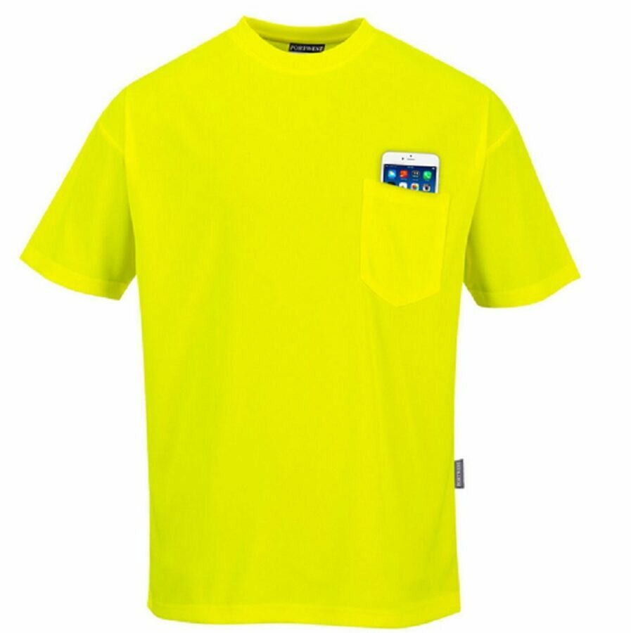 Description: This Day-Vis pocket t-shirt uses moisture wicking polyester fabric to keep the wearer cool, dry and comfortable under exerting conditions. Features include a pocket on the left chest, a crew neck, a taped neck seam for extra comfort and is a generous fit.