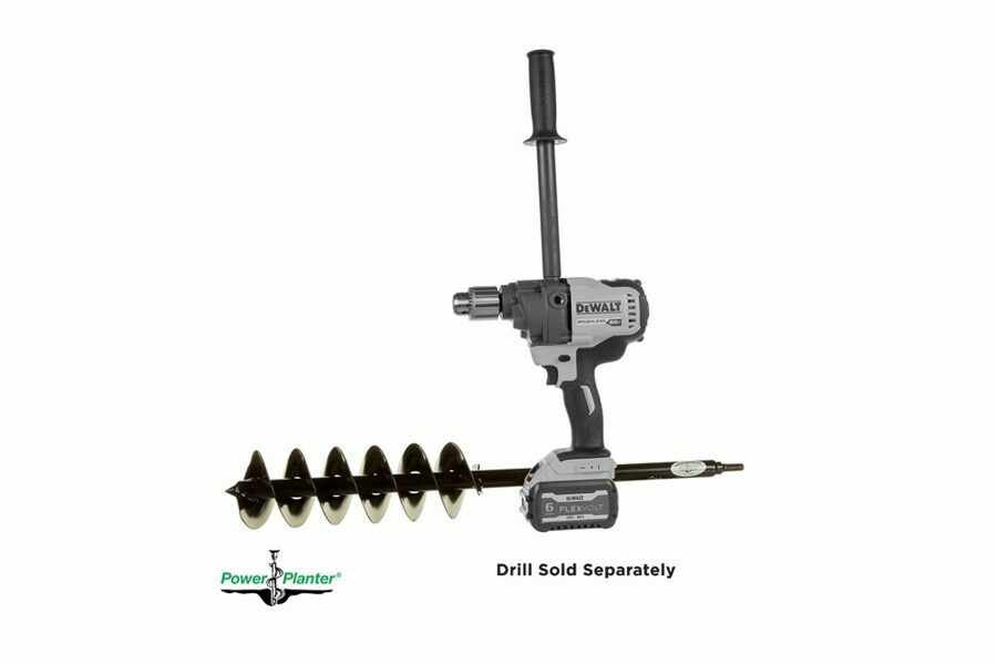 For the 4-inch auger, we recommend using a large cordless drill with a 1/2-inch hex drive with this large, long-handled bulb planter auger.