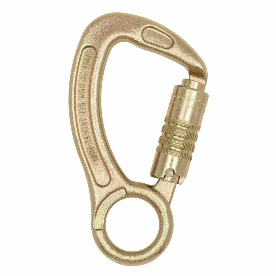 Description: This Forged Steel Carabiner with Captive Eye boasts a triple lock gate and high tensile steel construction, ensuring maximum strength and safety. With a zinc-plated finish and keylock gate, it offers a secure and reliable attachment. With an impressive 22 kN minimum breaking strength and a weight of just 11 oz, it's a valuable addition to any gear collection.