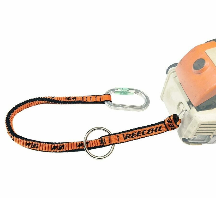 Description: THE REECOIL STANDARD BUNGEE CHAINSAW LANYARD HAS BEEN DESIGNED TO SUIT A CLIMBER'S BASIC NEEDS. Built from our custom 20mm, orange/black webbing. With the repeating REECOIL logo woven in. This lanyard will stand out on the back of any saw. Featuring an integrated bungee design to keep the compact recoil length and a hang ring to "high hang" your saw on your harness. With a total extended length of 1.4m (55 inches).