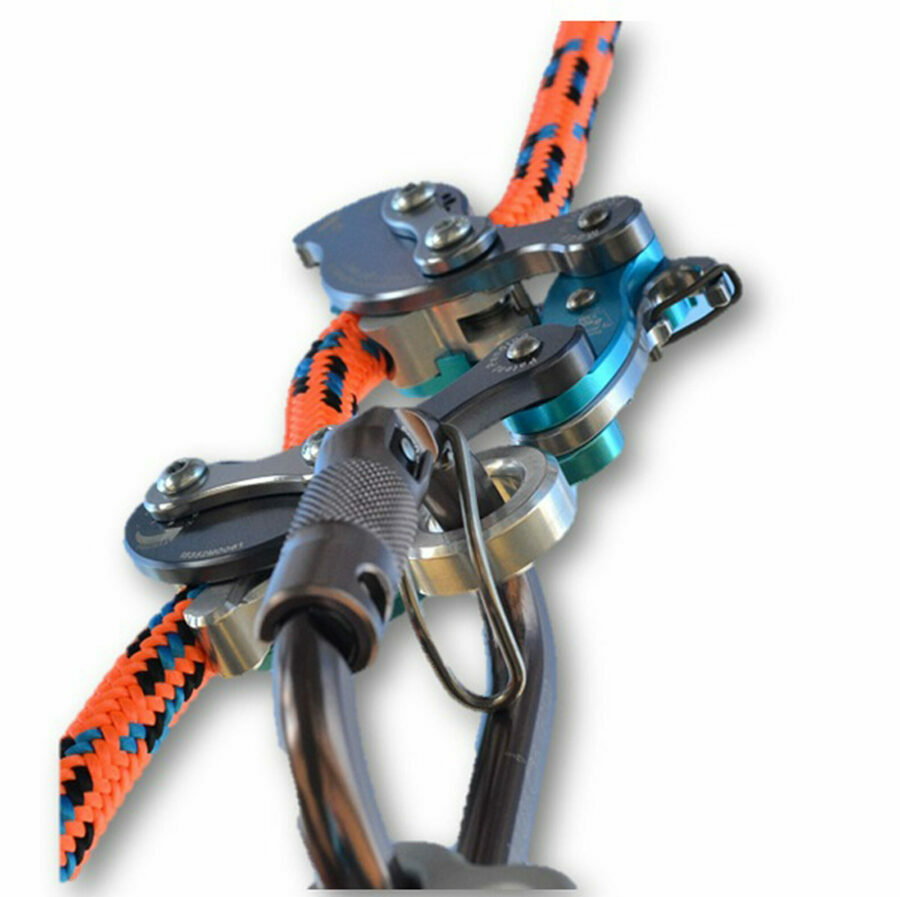 Description: Akimbo by Rock Exotica - The Akimbo is a long-awaited SRT (SRS) climbing device that is mid-line attachable. Opens easily to install/remove rope mid-line, without detaching from harness. Accepts wide range of rope sizes (See list of approved ropes below).