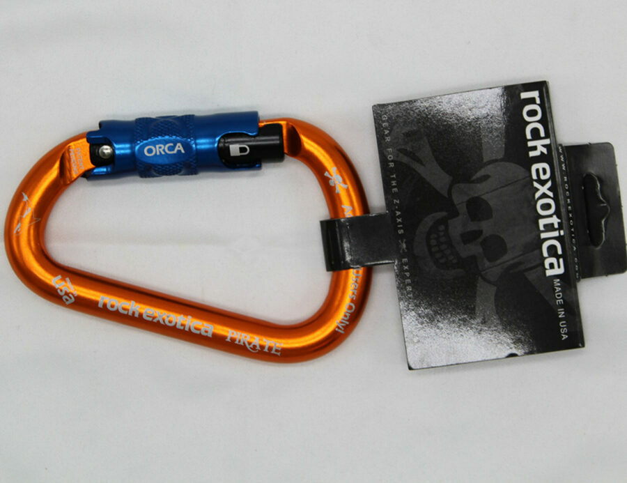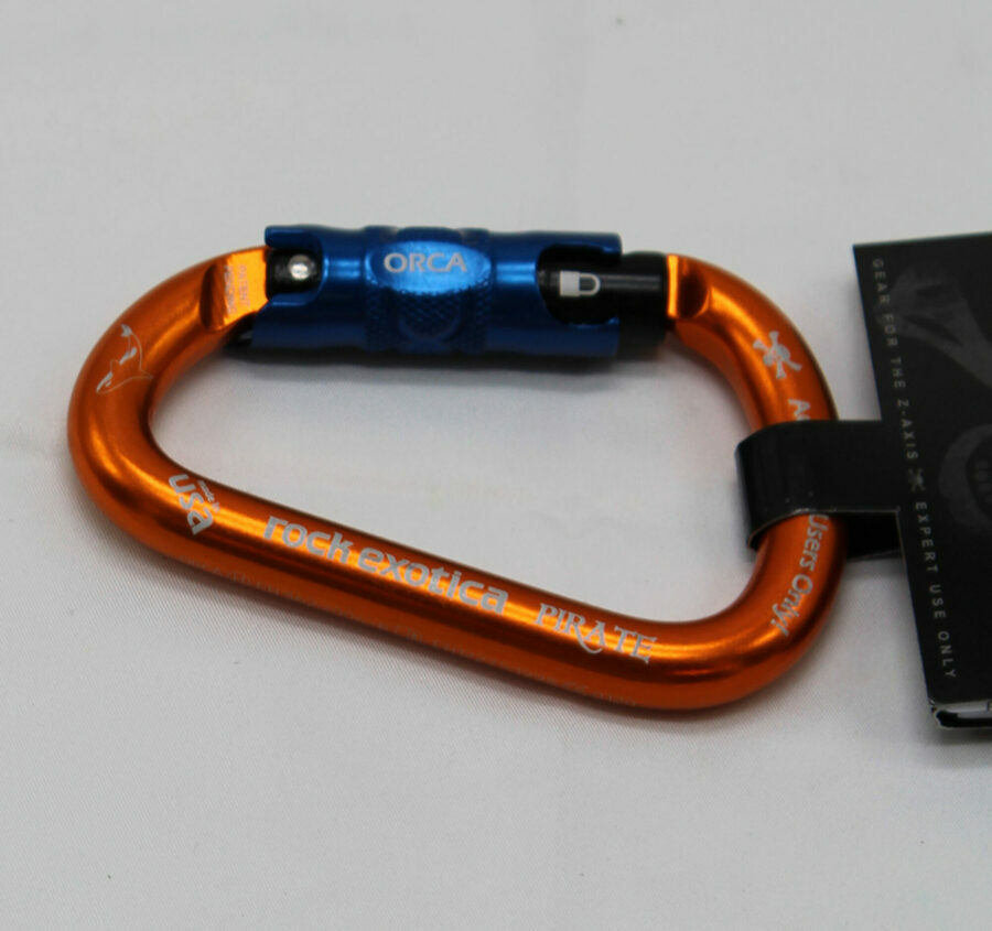 Description: The ORCA is an enhanced 3-stage mechanism available on Pirate, rockD and rockO carabiners. This unique gate system lifts up and twists just like many traditional auto-locks, but can be set to remain in the unlocked position.
