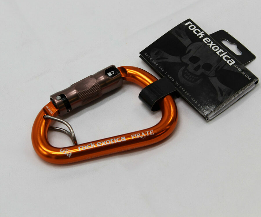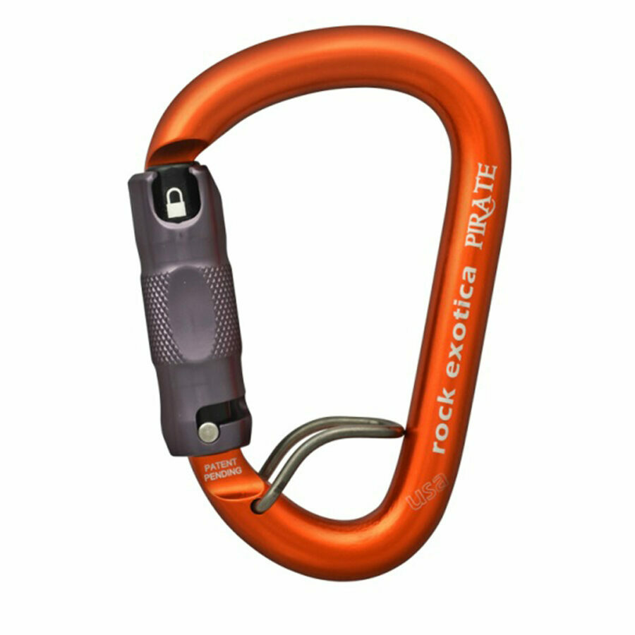 Description: As an HMS, or pear-shaped carabiner, the Pirate easily accommodates the use of a wide range of gear, webbing or ropes - either as a belay biner at the harness, or as a connector in a system. The Pirate's robust 0.5 inch diameter round frame will endure abuse from dirty ropes and metal connectors far beyond stamped carabiners with thin edges. The Pirate's durability matched with Rock Exotica's build quality ensures an impressive service life for the working professional or recreational enthusiast. Most ovals haven’t changed much since the dawn of time. Rock Exotica designed the RockO to be a modern oval carabiner that fits everything. It is stronger and features a big gate opening. Rock Exotica's WireEye combines the utility of a standard carabiner with the safety and capability of a lanyard pin, or captive eye. The WireEye holds gear, lanyards and lines with enough resistance to help prevent gear from moving past the end of the carabiner, but releases easily when lifted up. When the potential for dangerous leverage or cross-loading can occur, the WireEye helps keep the carabiner oriented correctly, and the gear where it belongs.