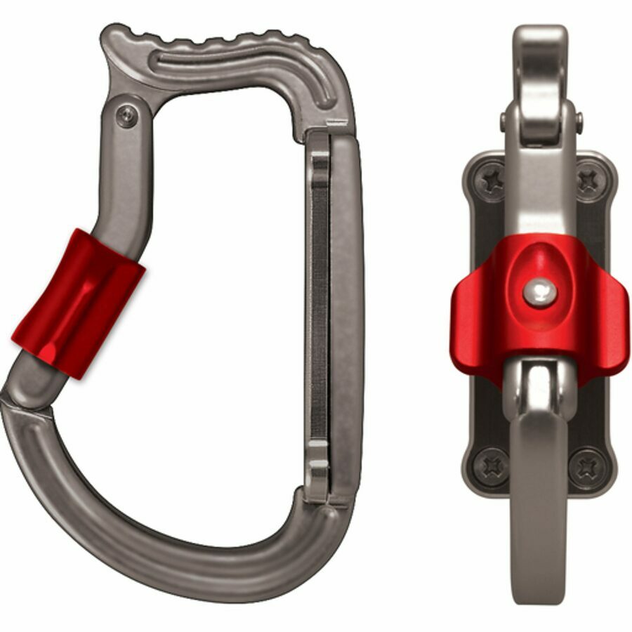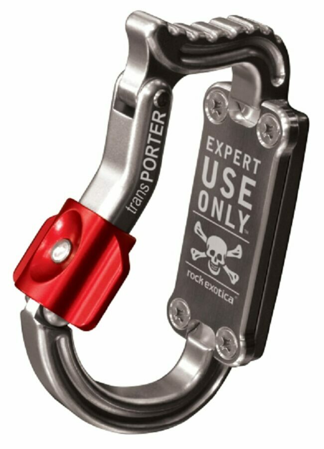Description: The TransPorter is designed as a harness tool-holder made for ease of use and security. The gate is equipped with a manual locking mechanism and wing design. The manual locking gate is a dual push button design that you can lock if desired to prevent inadvertently snagging or hooking unwanted items. But you can also leave it unlocked when needed so you are able to remove tools quickly without fumbling to repetitively unlock the gate. Unique wings on the gate allow the user to single-handedly retrieve and sort gear, even with gloves on. The transPorter semi-permanently attaches to the harness, secured by an aluminum plate with removable screws. The wide plate and rigid frame ensure the transPORTER will stay in position when used with small or large tools.