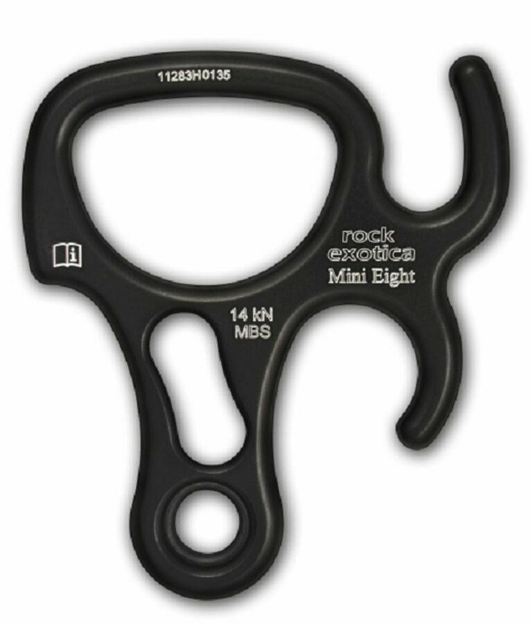 Description: The MiniEight features side ears that let you easily adjust friction and accommodate a wide range of rope sizes. Additionally, the side ears make it easy to tie off. The attachment hole has a rubber gasket that fits tightly to your carabiner.