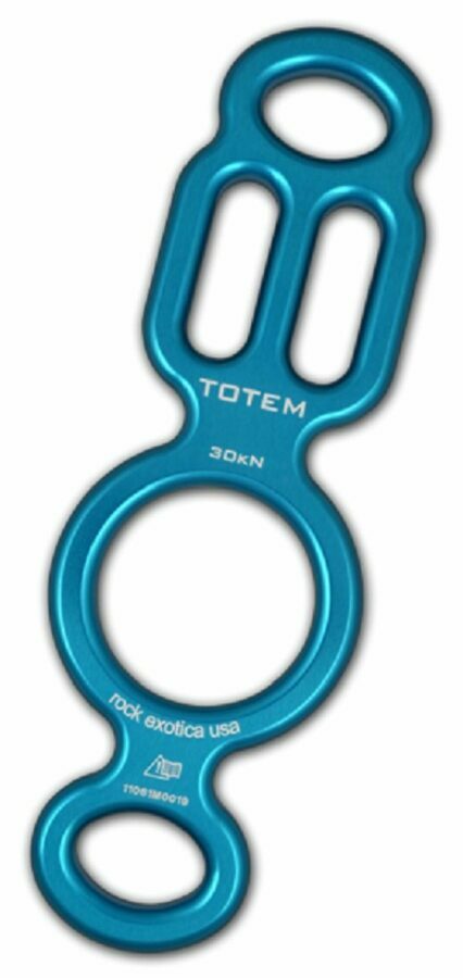Description: The Totem was designed to be the most versatile rigging and rappelling tool available. It can function as a rigging plate, an easy-to-lock-off figure 8, stitch plate, auto-blocking plaquette device, and many other configurations. Although designed originally for canyoneering, the Totem is a valuable tool for rock climbing, mountaineering, caving, rappelling and rescue.