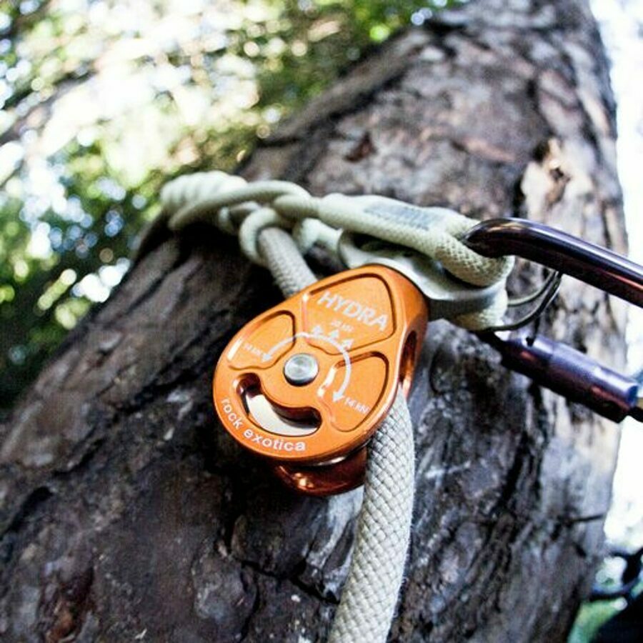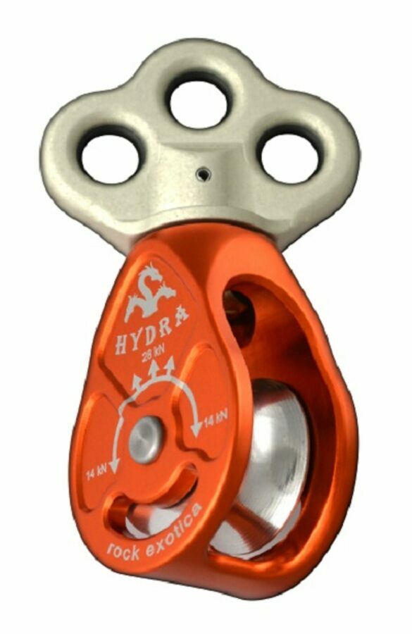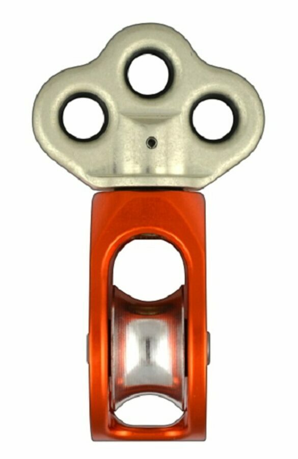 Details: Features a swivel-top connection to facilitate the pulley's use on the saddle bridge, and for use in climbing systems. Rubber o-rings line the connection points to assist in holding carabiners tightly to avoid dangerous cross-loading.