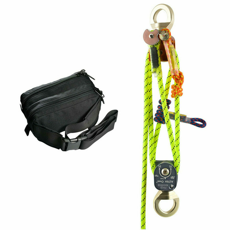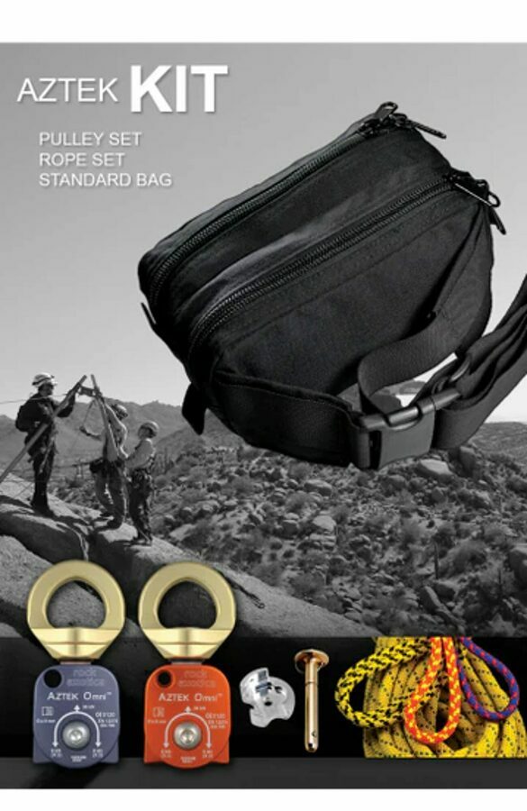 Description: The AZTEK system has become the ultimate Personal Mechanical Advantage kit that can be configured as a 5:1, or 4:1 with a re-direct by just rotating the system. The AZTEK can be used as a pick off, adjustable directional, high directional guy line, high angle attendant tether, high angle litter scoop, load release hitch and much more. Each pulley is color coded to match with a corresponding prusik for quick identification. The AZTEK pulleys are machined from solid aluminum, feature swivel connection points, and utilize high efficiency bearings.