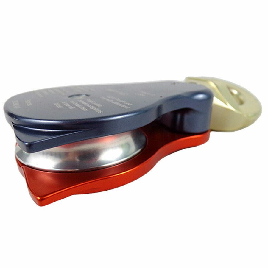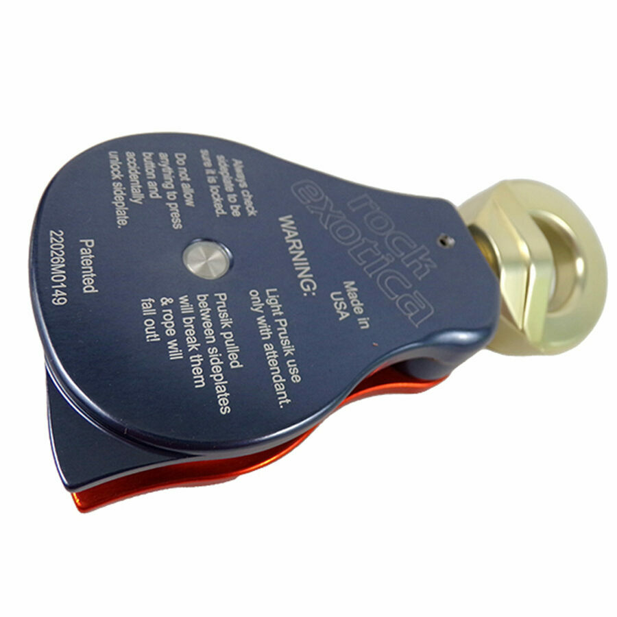 Description: Rock Exotica's Omni-Block combines a swivel and pulley into one tool, and incorporates a unique sideplate that opens while the pulley is till attached to the anchor. Traditionally, a pulley is connected to a swivel by a carabiner. However, the Omni eliminates the need for the carabiner, reducing length and pieces of equipment in the rigging system. The short length of the Omni is important when used in high-angle, confined space or other space-sensitive rigging environments. The reduced weight of the Omni will make hauling your gear easier. Additionally the Omni sideplate can be opened without detaching from the carabiner. Traditional pulleys require removing from the carabiner to change the rope. With the Omni, the user is able to do this while the pulley is still secured.