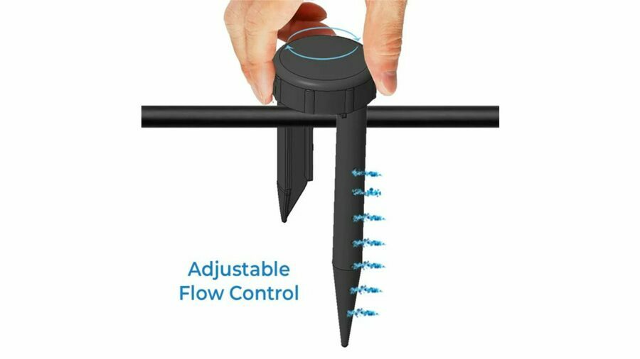Description: Perfect For Flowers, Vegetable, and Potted Plants - Root Quencher Spike is the latest in subsurface watering for drip irrigation. Designed for Homeowners and Landscape professionals, Root Quencher Spike installs directly onto a ½-inch drip line with its self-piercing capability, providing extra water to plants that need it along any drip system. The cap serves as a flow control and with our 90-degree adapter (included) you can connect a ¼-inch line and locate the Spike wherever a little extra water is needed. Root Quencher Spike connects directly onto ½ inch drip line to bring water to specific plants, flowers, and hillsides. Spike saves time and money with its self-piercing capability and the dual function of holding the drip line in place.