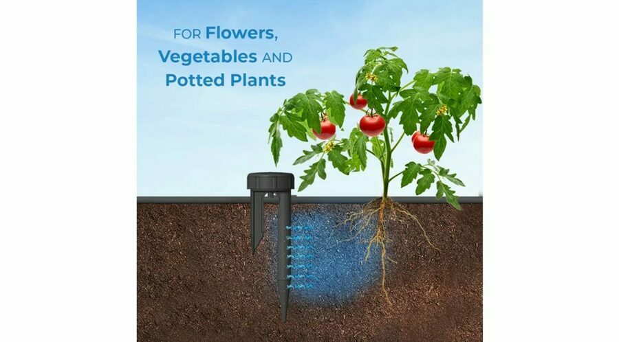 Details: Deep root watering system for small plants, flowers, vegetables, and potted plants Delivers water and fertilizer where needed Variable water control Self-piercing capability Compatible with all irrigation systems Easy to install Proudly made in the USA