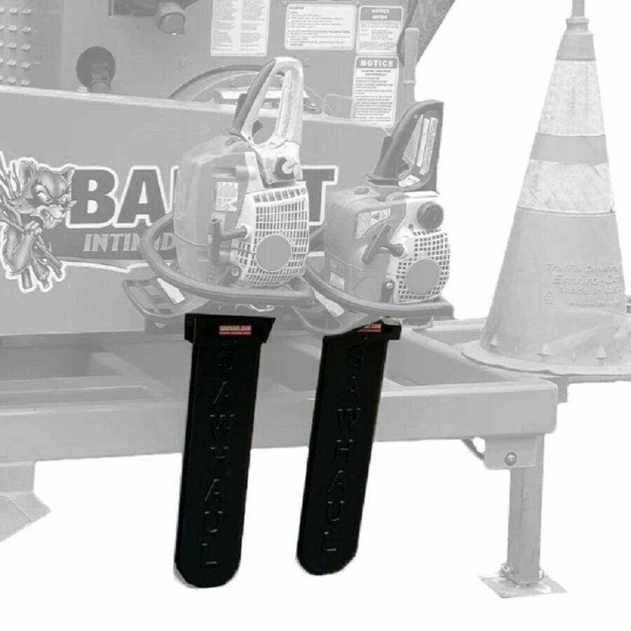 Details: This chainsaw holder is built with all American-Made steel and a proprietary UV protected plastic to shield your chain.
