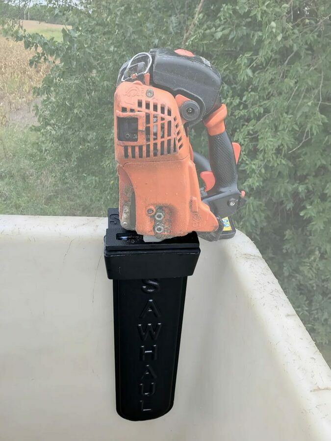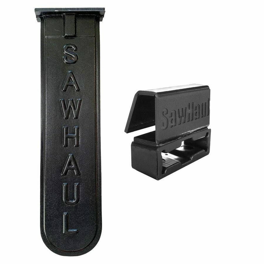 Description: Complete, non-conductive (no metal) kit for mounting the SawHaul to fiberglass buckets with the saw on the INSIDE of the bucket. This reduces the dangers of snagging your saw on limbs, guidewires, powerlines, etc. Using a combination of kinetic and potential energy, the Bucket Truck attachment allows a solid and secure way to mount your saw with top edge thickness up to 3" wide. It includes the SawHaul, Pro-Grade Scabbard, and the Bucket Adapter Plate. It lets you carry your saw without taking up any bucket space! A must-have for any tree-trimmer, arborist, line clearance company, or landscaping enthusiast! Scabbard Specs: 3/4" inside gap, and 5" wide. Top cap features a new 1/4" thickness and tool holder for scrench and file.