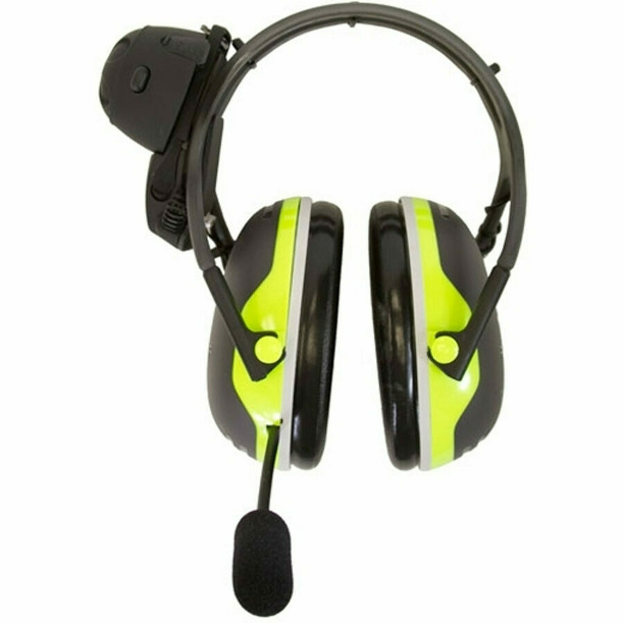 Description: This long range blue-tooth headset connects easily with the SENA Integrated Communication Helmets. This allows you to bring a customer, crane operator, or supervisor in on the conversation without a bulky hardhat. This custom product uses 3M hearing protectors to provide the added benefit of noise cancellation. The sturdy headband is also more durable than other models.