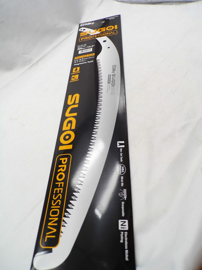 Description: Seriously, treat yourself to a "new" saw again. Get yourself a replacement blade for your Silky Sugoi Saw. Chrome plated, not impulse-hardened so yes, it can be sharpened with a file! Choose the blade size to match your saw.