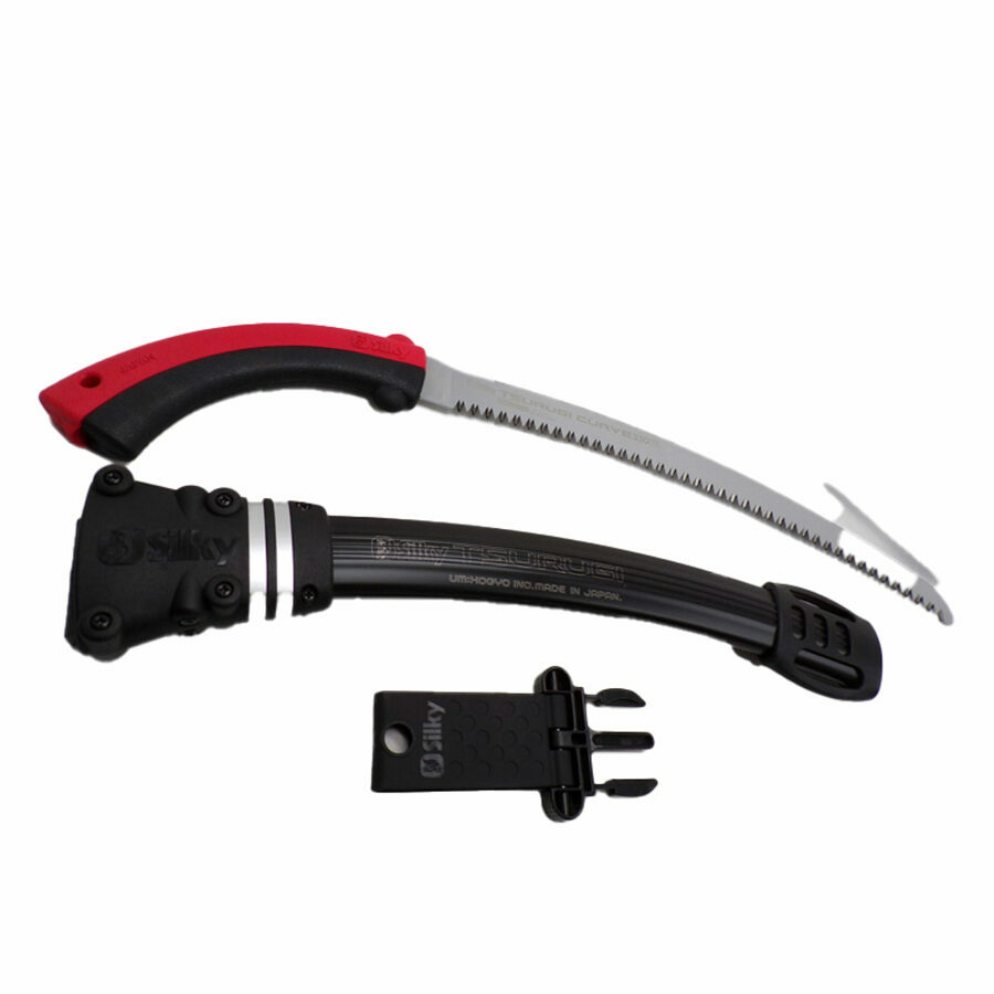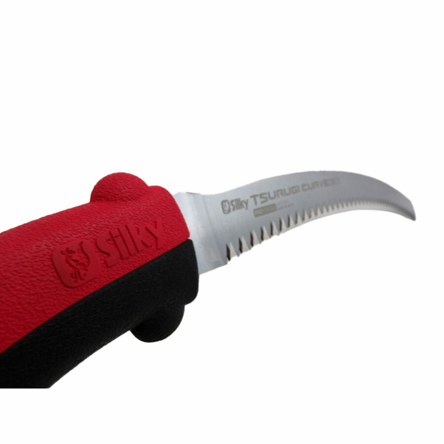 Description: Silky Tsurugi medium tooth, staight handsaw. Versatile slim handsaw; great for pruning in tight places or using on dry hard wood.