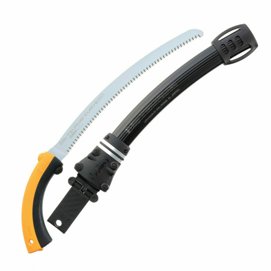 Details: The Silky Tsurugi Curved Hand Saw takes the unique Tsurugi design and tweaks the blade shape for a more aggressive cut. The Silky Tsurugi’s slim blade can easily fit into tight crotches without damage to opposing limbs due to its slender frame, and Silky's impulse-hardened, chrome-plated teeth stay sharp longer than any other brand of saw. The comfortable 2-part rubber grip is curved to provide the optimal grip for arborists and allows for easily swapping blades.