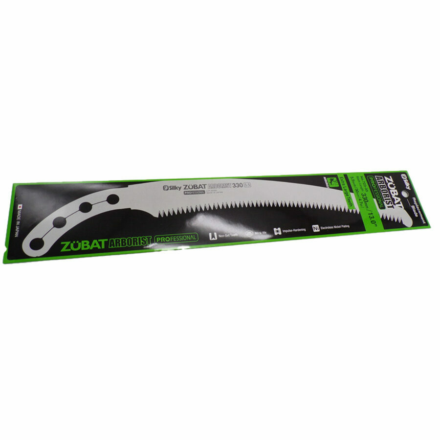 Description: The ZUBAT PRO is the most popular saw we sell because it is an absolute beast for pruning and has great, comfortable handle. The only area the ZUBAT PRO lacks in is cutting larger branches, which is why Silky has developed the ZUBAT ARBORIST edition. The ZUBAT ARBORIST edition features the same, awesome handle, but sports a 13-inch ZUBAT blade with extra-large teeth, giving you the saw you need when you're battling bigger branches. In addition to the new blade, the ZUBAT ARBORIST also has a new scabbard design that features a 3-roller system that helps guide the saw into the scabbard, preventing premature wear on the scabbard.