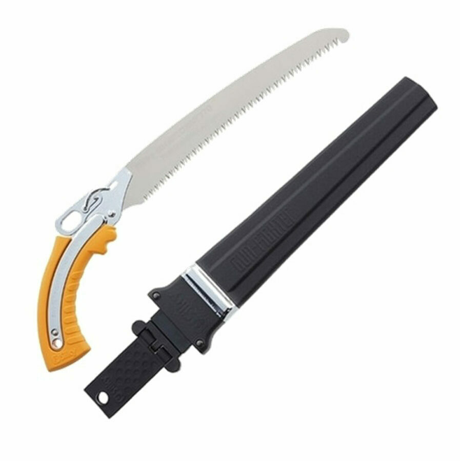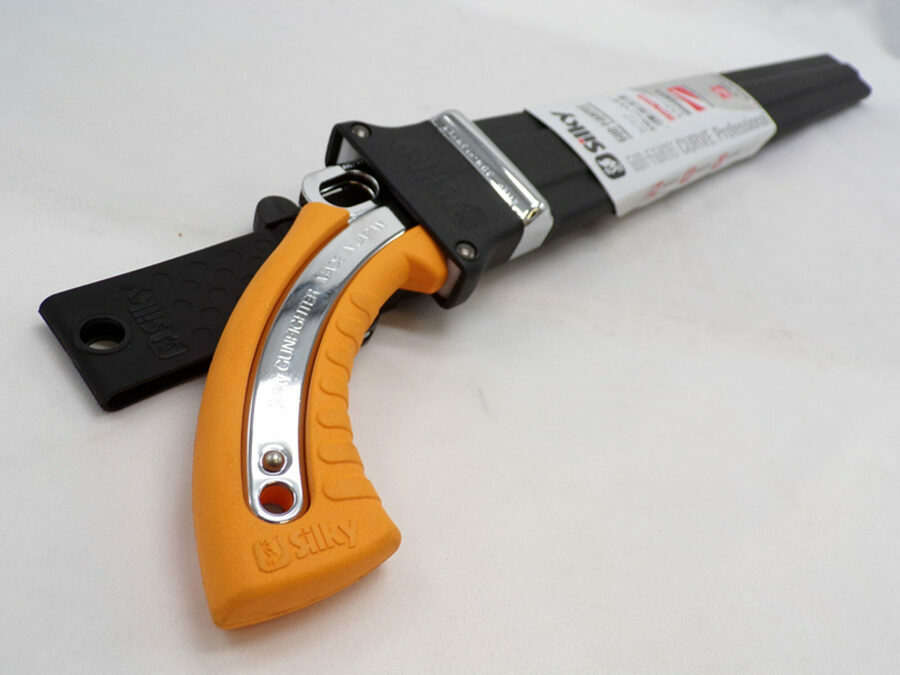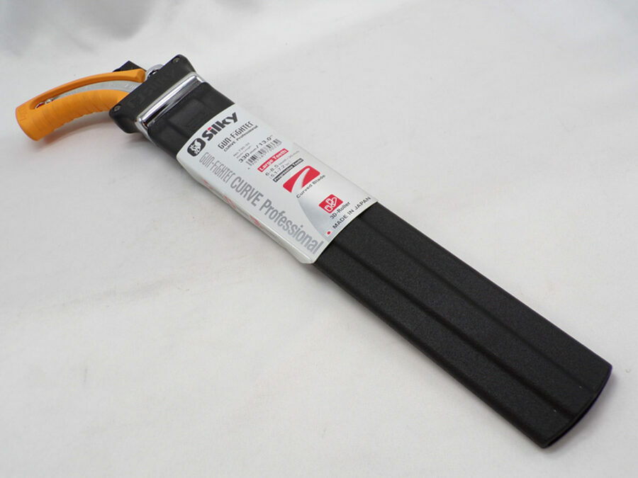 Description: Silky Gunfighter 330 Curved Saw. Meet the Gunfighter - cut larger wood, faster. The same trusted Silky name but new design. The Gunfighter design combines taper grinding, progressive teeth, and new Electroless Nickel Plating (ENP). Silky's patented dual roller locking mechanism results in the fastest and smoothest handsaw of its size. The ingenious design of the GunFighter's progressive teeth makes for easier starts to each stroke, while still taking advantage of larger, faster cutting teeth.