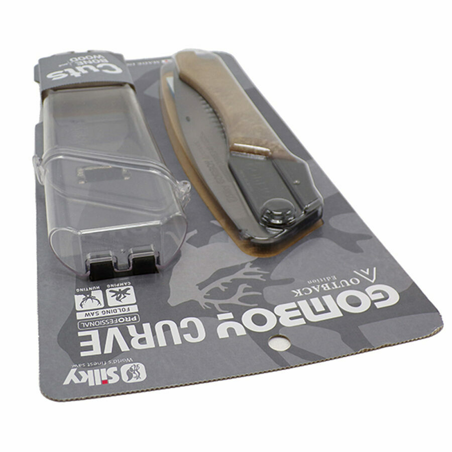 Description: The Silky Outback Edition hand saws feature a handle made of arbor composite which provides excellent grip and control for wet, cold and game-processing conditions. The blade can cut bone and wood, and is black-plated with a nickel/tin blend to improve durability and reduce reflection for stealth, low-impact activities. 170mm Straight