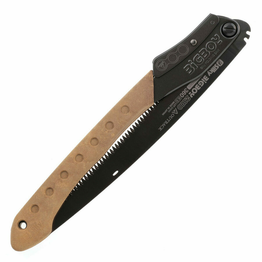 Description: The Silky Outback Edition hand saws feature a handle made of arbor composite which provides excellent grip and control for wet, cold and game-processing conditions. The blade can cut bone and wood, and is black-plated with a nickel/tin blend to improve durability and reduce reflection for stealth, low-impact activities.