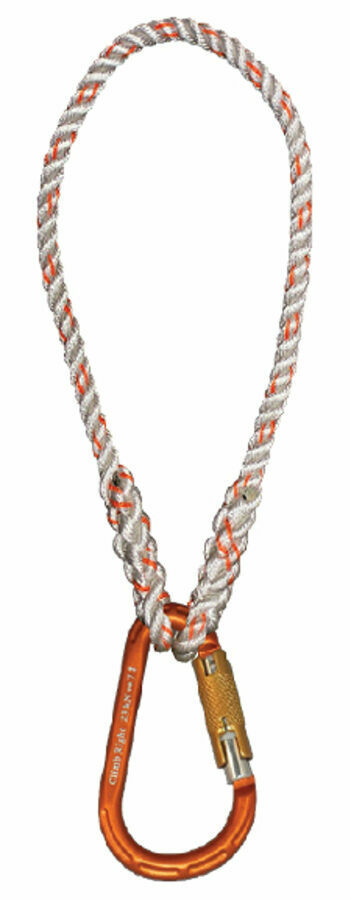 Description: 1/2" X 20" 3 STRAND PRUSIK WITH HMS CARABINER