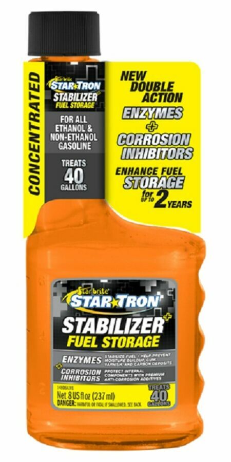 Add Star Tron Stabilizer+ to fuel prior to storing to protect against corrosion and fuel breakdown. Remove cap and pour directly into tank.
