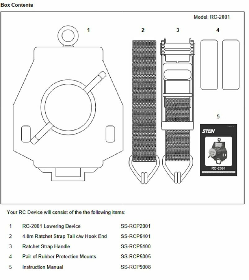 Description: The RC-2001 is a medium duty single bollard lowering device. Weighing in at just over 5kg it can easily be mounted by one person by utilizing the top attachment point as a suspension point. Attached to the tree using a specially designed 5m 5t ratchet strap with 50mm webbing and backed up by securing a choked sling to the base anchor point. Fitted with the same diameter drum as the RC2000 this device can be used with working ropes up to 16mm and has a working load limit of up to 2000kg (subject to mounting type)