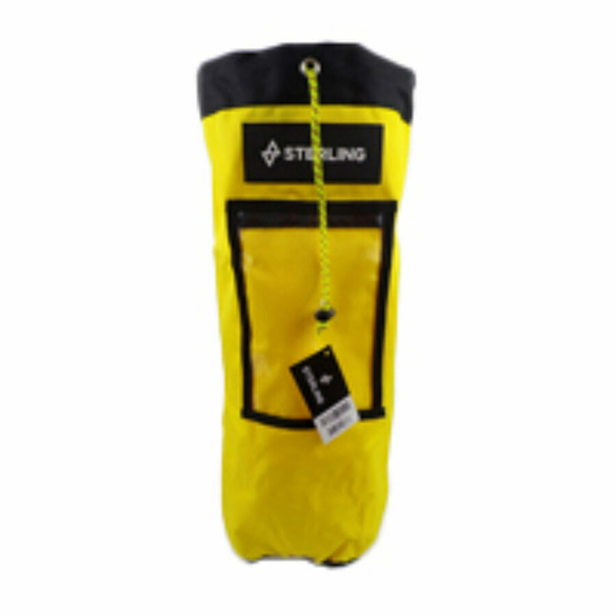 Description: Sterling's rope bags have padded backpack straps for easy hauling, a clear front pocket to store a rope log, and a cinch top closure.