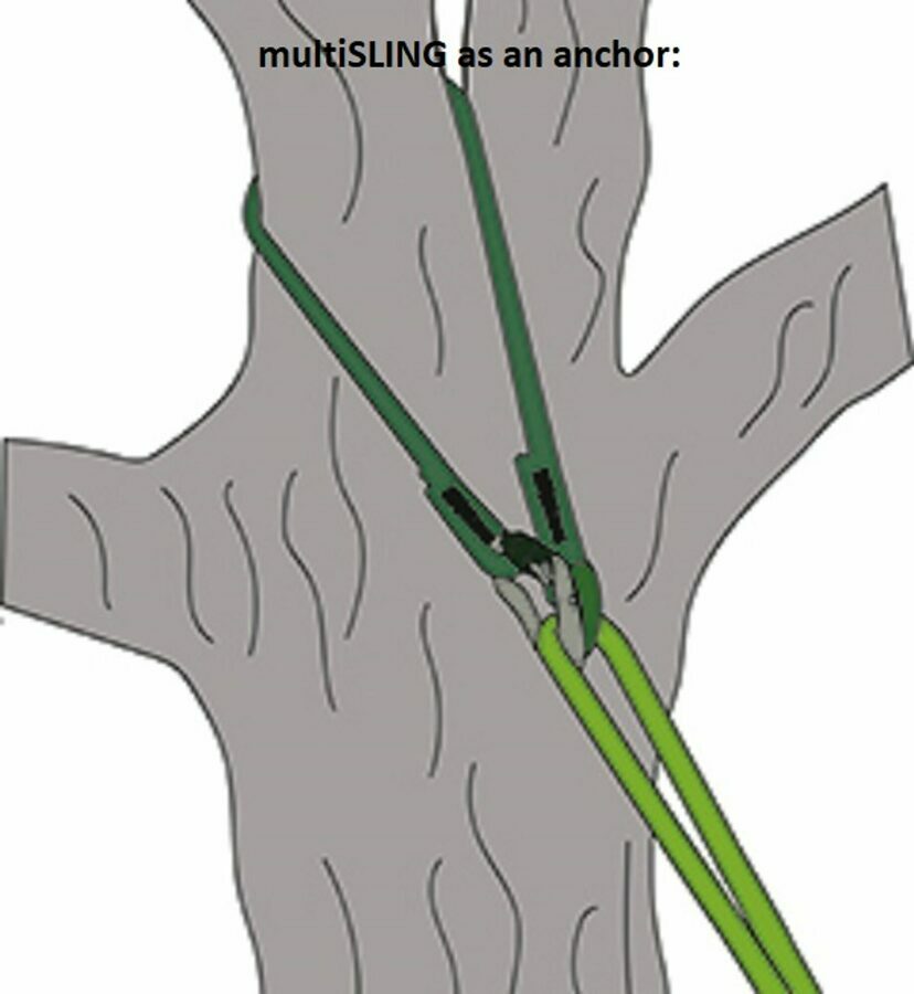 Description: Being an all-rounder with a great number of possible applications in the field of tree care, our multiSLING is the multipurpose tool par excellence. It can be used as an anchor sling and a hitch cord, in single leg or choked configurations. In combination with a Revolver carabiner from DMM, our multiSLING also serves as a good cambium saver.