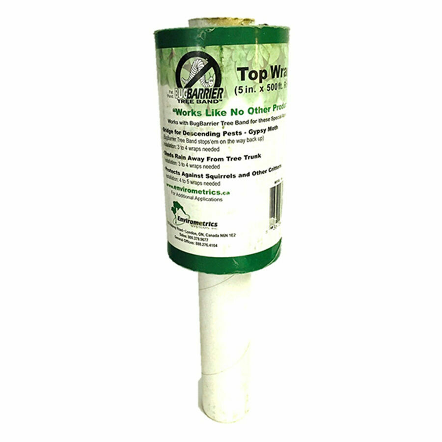 Description: This BugBarrier Top Wrap is just one component of the BugBarrier Tree Band Gypsy Moth Kit. This gives you 500' of top wrap to add to your existing materials. BugBarrier is a simple-to-install and non-poisonous approach to effectively trapping and killing a list of insects capable of defoliating full-grown trees. BugBarrier Tree Band works the entire season to catch canker worms, gypsy moths, ants or similar insects on a hidden, sticky surface that stops them from climbing trees. The product arrives in two rolls. The first is dense cotton under layer that fills crevices in the bark to detour passage above. The second roll is a sticky and wide band capable of retaining thousands of tree-killing pests during the season. Although most pest movements happen in the spring and fall, check with your local extension service to find out the correct season. Best of all, when your customer sees how effectively this product works, you can expect a call every season.