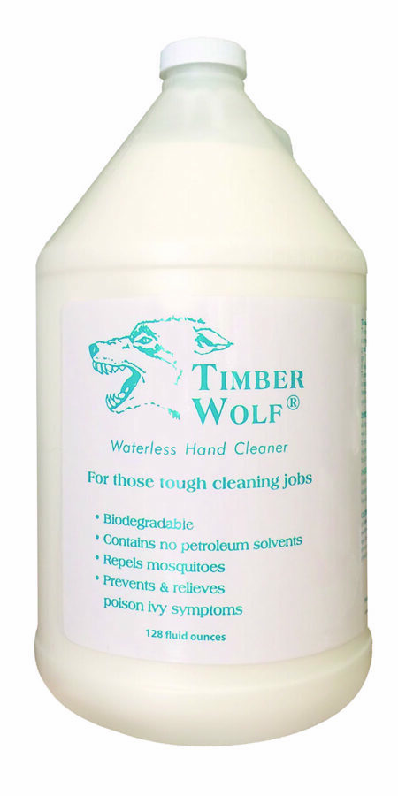 Description: Timber Wolf Waterless Hand Cleaner is a citrus based, biodegradable, environmentally safe, waterless hand cleaner. Other products leave your hands dry and gritty, but not Timber Wolf. Our product contains no pumice, petroleum, or mineral solvents.