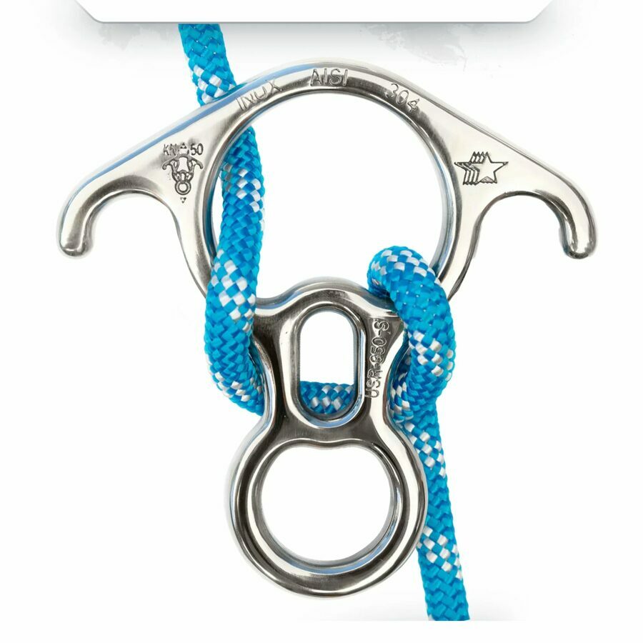 Description: Crafted from premium stainless steel, the Big Rescue Figure 8 Descender offers exceptional strength with a maximum load capacity of 11,200 lbs, ensuring reliable performance in demanding situations. Its robust construction and bent-ears design enhance rope control and prevent slippage, making it ideal for professional applications such as rescue operations, rappelling, and boating. Compatible with ropes between 11 mm and 16 mm in diameter, this versatile device delivers smooth, controlled rope handling for both descending and belaying. Engineered for durability and precision, it is an essential tool for experts requiring dependable safety and efficiency in critical environments.