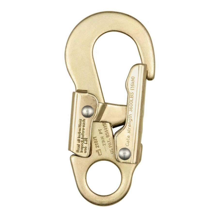 Description: Made especially for rock climbing, as well as safety and rescue, this ANSI certified snap hook is perfect for fall protection when you need it most. This patented Double Action Steel Double Lock Snap Hook is patented and features a double action, self-locking gate mechanism. Made from high tensile forged steel and a yellow / silver zinc plate finish, this heavy duty steel snaphook is super strong with a minimum breaking strength of 23kN.