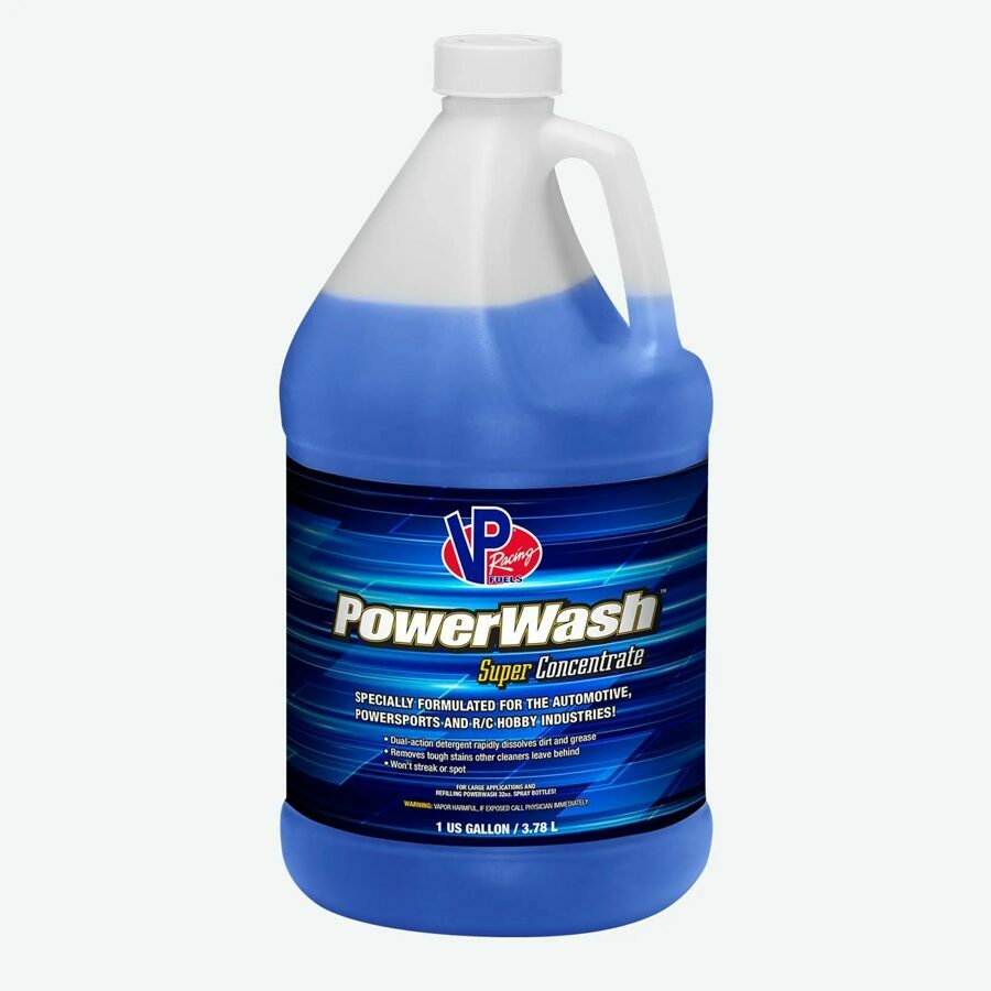Description: VP PowerWash car wash concentrate is designed for the demanding applications unique to motorsports, powersports, and R/C hobby vehicles. Its dual-action, powerful detergent suspends and floats away dirt and grease. You'll experience easier cleaning without streaks or spots. For extreme dirt and mud, use VP PowerWash straight from the bottle. For normal washing, dilute it with water and refill our VP PowerWash 32 oz. spray bottle. When diluting in a spray bottle, use a 50:50 ratio of water to our car wash concentrate. You can also use it for large applications, such as off-road vehicles and dirt track cars. Discover what UTV Action Magazine had to say when they put PowerWash to the test.