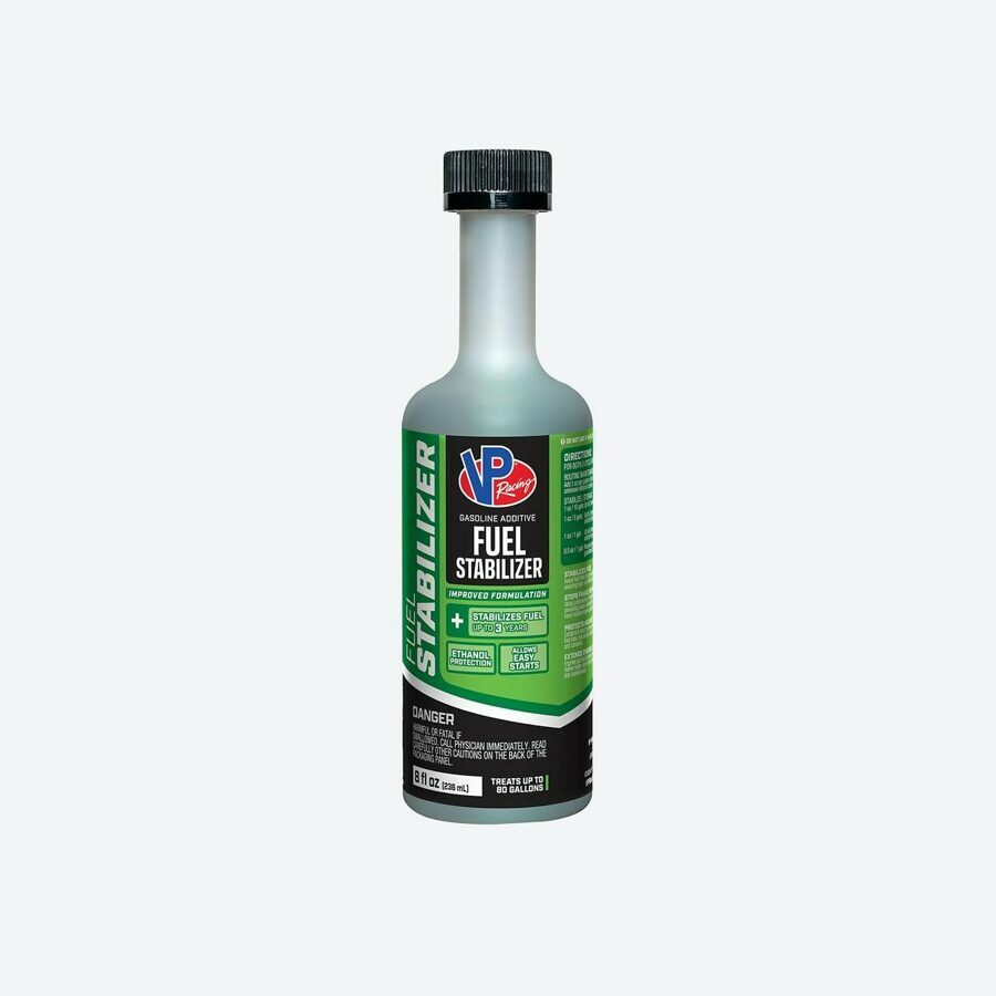 Description: VP Fuel Stabilizer helps extend engine life by stabilizing fuel for up to 3 years. Our gasoline fuel stabilizer features an advanced formula that prevents deposit-forming gums and varnishes, ensuring clean operation after off-season storage for all 2- and 4-cycle gasoline engines. It also uses a demulsifier that removes water from ethanol-blended fuel, eliminating hard starts and rough running, and contains A-rated corrosion inhibitors to safeguard vital engine components—fuel tanks, fuel lines, injectors, and carburetors—from rust and corrosion. Trust VP to protect your fuel and engine, extend engine life, and reduce maintenance needs.