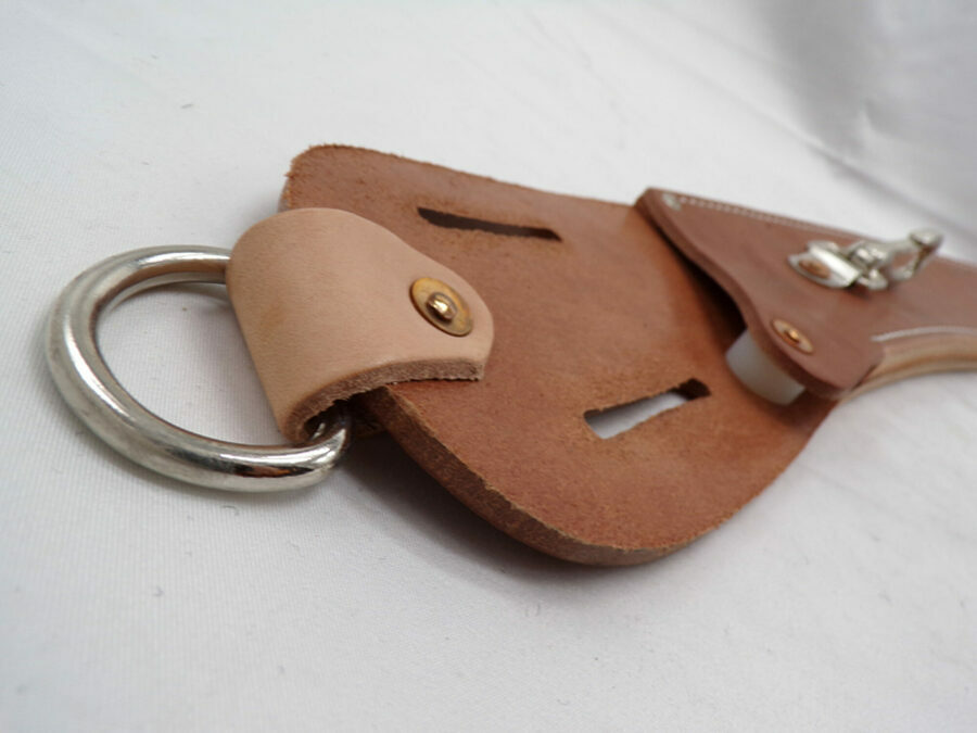 Attach to a belt snap with the dee that's riveted to the top or use the 2" slots to slip over a belt.